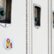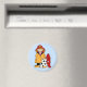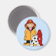 Menina bonita e bombeiro viu cachorro e hidrante.