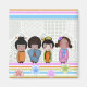 4 bonitinhas kokeshi no padrão clássico de fundo japonês.