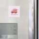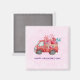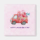 Um imã feliz dia de os namorados com um carrinho de cor vermelha. Corações de carregando e flores no fundo. Eu te amo, escrito do lado. Impressionante e adorável. Rosa claro de fundo padronizado.