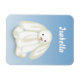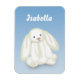 Linda ilustração de desenho animado para crianças com um belo coelho branco com orelhas grandes e disquetes sobre fundo azul claro. Personalize e personalize este produto com o seu Nome desejado ou deixe-o vazio.