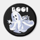 O ímã Ghost bonito apresenta nossa arte digital original de um fantasma assustador com a palavra boo! em branco sobre fundo preto. Divirta-se com o Halloween com nossos presentes fantasmas. Este fantasma assustador é perfeito para qualquer um que adora ter medo, ama o Halloween, ama truques ou tratos e fantasmas em geral. Tenha um Halloween assombrado!