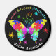 Borboleta única e bela com peças de quebra-cabeça de autismo, e as mensagens de "Amor, Apoio, Advogado" para apoiar a Consciência do Autismo.