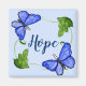 A arte apresenta duas borboletas azuis voadoras sobre as vinhas verdes. Pintura feita em aquarela. Personalize a fonte e as palavras com seu próprio ditado ou nome pessoal!