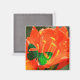 Uma linda flor de laranja beijada por orvalho e uma borboleta invisível.