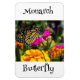 A Bela Borboleta Monarca! Uma das mais feridas das Borboletas. Famoso pela sua migração sazonal. Tamanho médio, corpo amarelo com listras pretas, manchas de branco. A planta hospedeira deles é a usina de Milkweed. A fêmea planta seus ovos brancos ovais na ordenheira. Os machos têm duas manchas pretas nas asas traseiras. Este que fotografei, renasceu recentemente, apenas 10 minutos antes disso. Plantei-a numa flor rosa de marigold. A bebida das plantas de néctar. Principalmente sua planta hospedeira, a ordenheira, com flores vermelhas e amarelas. Como lagarta, são listras brancas-amarelas e pretas. Aproveite esta linda foto de uma borboleta monarca que renasceu, em Magnets na minha loja! Colorida para a geladeira! Foto Copyright de Deborah Carr