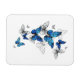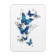 Borboletas azuis voadoras morfo e borboletas brancas em um fundo de abstrato leve. Morpho. Design com borboletas azuis morfo.