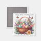Uma bela imagem de duas borboletas com um cheio cesto de flores e ovos coloridos é apresentada neste ímã para Páscoa e Primavera. A mensagem no ímã diz: "Feliz Primavera e Felz pascoa", fazer esta decoração bonito ou dá como presente para Páscoa!