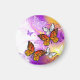 Laranja, borboletas monarcas detalhadas sobre luz, roxo, pitoresco, fundo pintado.