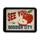 Um charmoso imã de geladeira de viagens vintage da Louisiana, na cidade de Bossier, com uma bela maçã vermelha, juntamente com um texto retrorreflector divertido que diz: "Vemo-nos na cidade de Bossier"