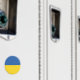 A bandeira da Ucrânia é uma faixa de duas bandas horizontais, de tamanho igual, de azul e amarelo. O topo representa o céu e o amarelo representa o trigo. Bandeira Nacional da Ucrânia