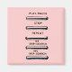 Íman rosa com botões como um cd ou dvd. Jogar / pausar, parar, repetir, pular e pesquisar. Personalizável.