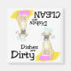 Este ímã mostra um Boxer vestindo um chapéu de chef e também com uma concha na boca. O texto diz: "Os pratos estão sujos". Vire este ímã de cabeça para baixo e o mesmo Boxer aparecerá com este texto: "Os pratos estão limpos". Excelente para esse amante de os animais na sua vida! Procurando adotar um novo melhor amigo? Visite petfinder.com para salvar a vida de um animal de abrigo/salvamento próximo a você. **Gráfico utilizado com permissão da Nova Development Corporation**