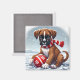 Íman Boxer Puppy Vestindo um ímã vermelho