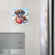 Imagem encantadora de um filhote fofo Boxer desfrutando de um dia de neve, mostrando sua natureza divertida com uma bola vermelha vibrante. Representação perfeita da inocência, inverno e alegria dos animais de estimação.