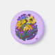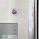 Magnet with a brain design that has flowers and a colorful brick wall..