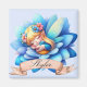 Bela, floral brilhante, doce sonho dormindo fada vestindo uma coroa de flores com fundo azul.