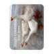 Foto de Zolotareva.Ganso branco na neve branca.Gansos são engraçados.Você pode adicionar nome ou texto personalizado. Personalize esta modelo.