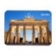 Uma fotografia do Portão de Brandeburgo em Berlim, tirada à hora azul numa bela noite ensolarada, aparece neste ímã de souvenir. O texto é personalizável ou removível. Os ímãs fazem um presente ideal, ou um presente pessoal para ficar no seu frigorífico ou no armário. Este ímã mede 7,6 cm x 10,2 cm (3" x 4"), é feito de um vinil flexível que contorne a superfícies curvas, é resistente à água e à mancha e impresso com cor de cheio vibrante. Um ímã maior também está disponível, tamanho 10,2 cm x 15,2 cm (4" x 6")