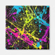 Bright Neon Paint Splatter, este design apresenta uma cor néon brilhante que pinta o padrão de splatter em um fundo preto.