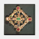 Brooch da Escola Bizantina sob a forma de uma cruz grega (pedras de ouro e precioso) situada no Museu Nacional do Bargello, Florença, Itália. O broche na forma de uma cruz grega (pedras de ouro e precioso) foi criado por volta do século 6.