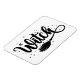 Este design preto-e-branco apresenta a palavra "Bruxa" em uma letra de script audível e em negrito, com a extremidade posterior da letra "h" transformando-se na alça de uma vassoura. O texto está estilizado com um olhar lúdico e escrito à mão, acrescentando um toque caprichoso ao tema geral. Ao redor da palavra estão estrelas dispersas, criando um efeito mágico, noturno estrelado que melhora o tema brutal. A vassoura, posicionada diagonalmente sob o texto, acrescenta um elemento dinâmico à design, sugerindo movimento e profundidade.