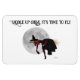 Bruxa Tipsy Sobre A Vassoura Voadora, Magneta Flexível. Circe é uma bruxa tonta silenciada contra uma lua de cheio, segurando sua garrafa de vinho. Design transparente que se parece bem contra um fundo branco, mas as estrelas brilham mais contra um mais escuro. Edite a citação com seu próprio texto ou remova-a totalmente.