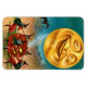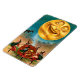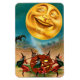 Um ímã flexível do Dia das Bruxas engraçada apresentando um grupo de bruxas dançando ao redor de um Jack O'Lanterna sob a lua sorridente brilhante. com