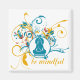 Buda meditando num círculo central ao redor de um fundo floral azul, laranja e vermelho! Gotas e borboletas azuis e texto "Seja indolente"... com camisas e presentes budistas coloridos e relaxantes! Lembrete maravilhoso de um dos melhores ensinamentos do Buda, Mindtness!