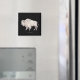 A pintura acrílica de Linda Baysinger Peck de um búfalo branco, ou bisão, com cheio de lua branca a preto. Arte simbólica da vida selvagem. Imagem © Linda Baysinger Peck Todos os Direitos Reservados