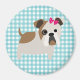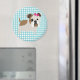 Íman Buldogue francês sobre Design de Gingham Azul e Br