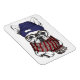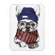 Este retrato de um cachorro de inverno aconchegante mostra Bulldog francês vestindo cachecol de malha, beanie e óculos