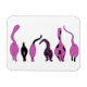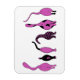 Um desenho de seis gatos mostrando seus bumbuns roxos bonitos.
