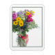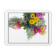 Um buquê requintado de flores cortadas em um vaso de vidro com fundo branco.