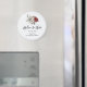 Um ímã com uma ilustração floral. Lindas rosas creme e vermelhas reunidas em um buquê com caules e folhas cinzas.