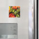 Rosas de laranja vibrantes e buquê de folhagem verde.