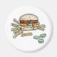 HAMBURGER pop com FRIES. Um gráfico clássico do estilo pop da All American Burger & French Fries - Um pão de semente de sésamo e batatas fritas de picles como lados! Retro e divertido, perfeito para restaurantes, jantares e cozinha doméstica.