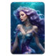 Uma bela sereia com cabelo roxo cascata no oceano.