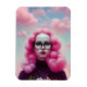 Uma pintura gerada pela IA de uma garota com cabelo cor-de-algodão doce rodeado por nuvens cor-de-rosa de algodão doce. Perfeito para um quarto de adolescente ou de menina adolescente.