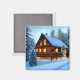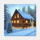 Linda cabana de madeira abstrato de arte pioneira em florestas de inverno.