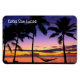 O imã é mostrado com uma impressão de foto de uma praia no pôr do sol em Cabo San Lucas, México. Tamanho 4x6. Imagem do stock wallpapercave.com