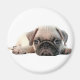 Um filhote de cachorro adorável descansando e parecendo triste e fofo.