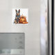 Íman Cachorro australiano ao lado de um Jack O-Lanterna