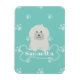 Cãozinho branco de poodle fofo fofo e monograma do padrão de impressão de pata.