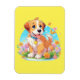 Um ímã com uma fotografia de um filhote fofo sentado entre as flores. Ele parece muito feliz por estar cercado por flores e borboletas. O presente perfeito para dar àqueles que amam cachorros. Contém conteúdo generativo.
