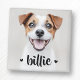Imã de geladeira de fotos com a foto personalizada de seu animal de estimação com o nome do animal de estimação como uma sobreposição de texto preto (ou personalizado) flanqueada por dois corações.