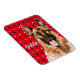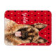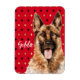 Na moda magnet apresenta uma ilustração do estilo de retrato de aquarela do cão German shepherd sobre fundo de harlequin vermelho preto e dourado. Personalizar com nome ou mensagem especial