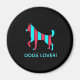 Retro, pop, criação colorida de silhueta de cão, Redonda de ímã. Tema especial da coloração azul e vermelha, com ícone simples, mas elegante, chamado arte. Arte digital original do Raphael Studio - 'Cachorro'. Pop e estilo retrorreflectores, design exclusivo. Texto editável: Altere o título para sua preferência.