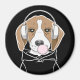 O design apresenta uma ilustração de um beagle relaxante vestindo fones de ouvido e soprando a borbulha rosa. Com sua cor de fundo favorita personalizada, ela faz um ímã bonito, engraçado e único.