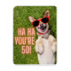 Imagem divertida de marco de aniversário mostra foto de riso do cachorro Corgi com óculos de sol e "Ha Ha You're 50"