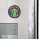 Uma imã salve a data de aniversário (ou outro evento) com uma bela ilustração de um cacto, com grandes olhos kawaii, vestindo um sombrero vermelho. O plano de fundo é uma imagem do quadro